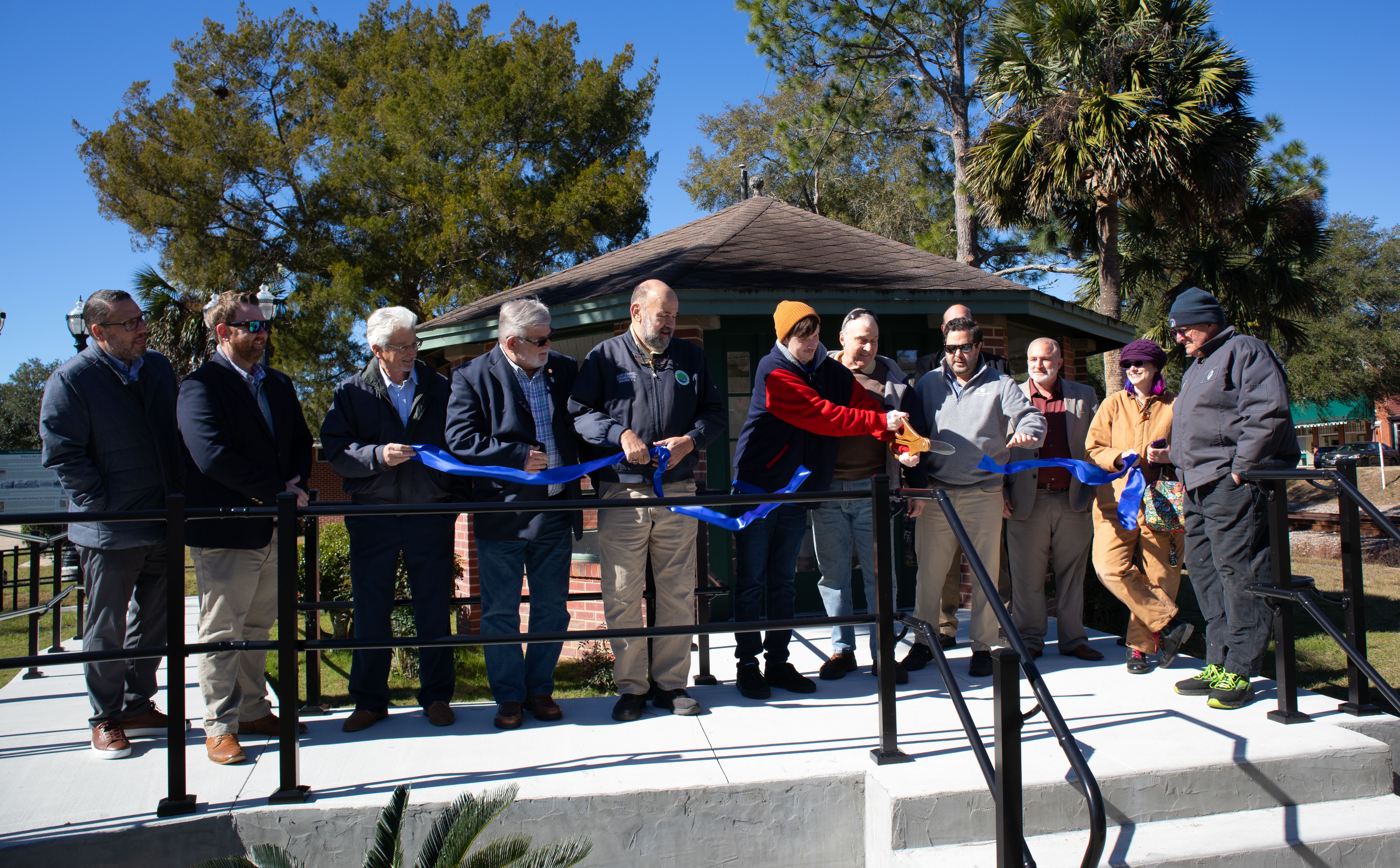 Completion of improvements at historic Henry Park in DeFuniak Springs was celebrated with a ribbon cutting ceremony attended by members of the Walton County Board of County Commissioners, Walton County Tourism and Beach Operations, DeFuniak Springs City Council and the community.